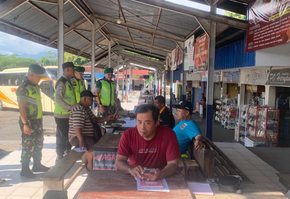 Wonogiri – Indoshinju.com ‘ Danramil 19/Purwantoro Kapten Inf Rusdi memerintahkan anggota Babinsa memantau arus balik di Terminal Nus AKAP Purwantoro. Selasa (24/3/2026).