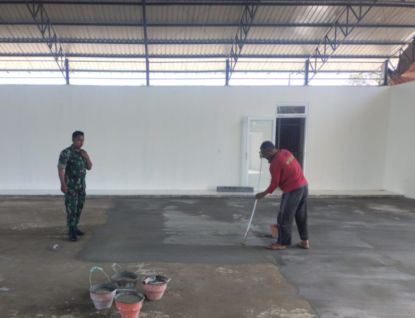 Sertu Surono selaku Babinsa turut memonitor proses pembangunan serta berkoordinasi dengan aparat desa dan masyarakat setempat guna memastikan pekerjaan berjalan dengan lancar dan sesuai rencana.