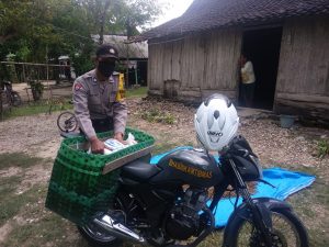 Diterangkan Aipda Mahmudi , bantuan tersebut langsung diantarkan ke rumah warga untuk menghindari adanya penumpukan atau kerumunan warga. Apalagi saat ini pemerintah menghimbau kepada seluruh masyarakat agar melaksanakan sosial distancing dan melarang masyarakat untuk keluar rumah jika tidak penting.