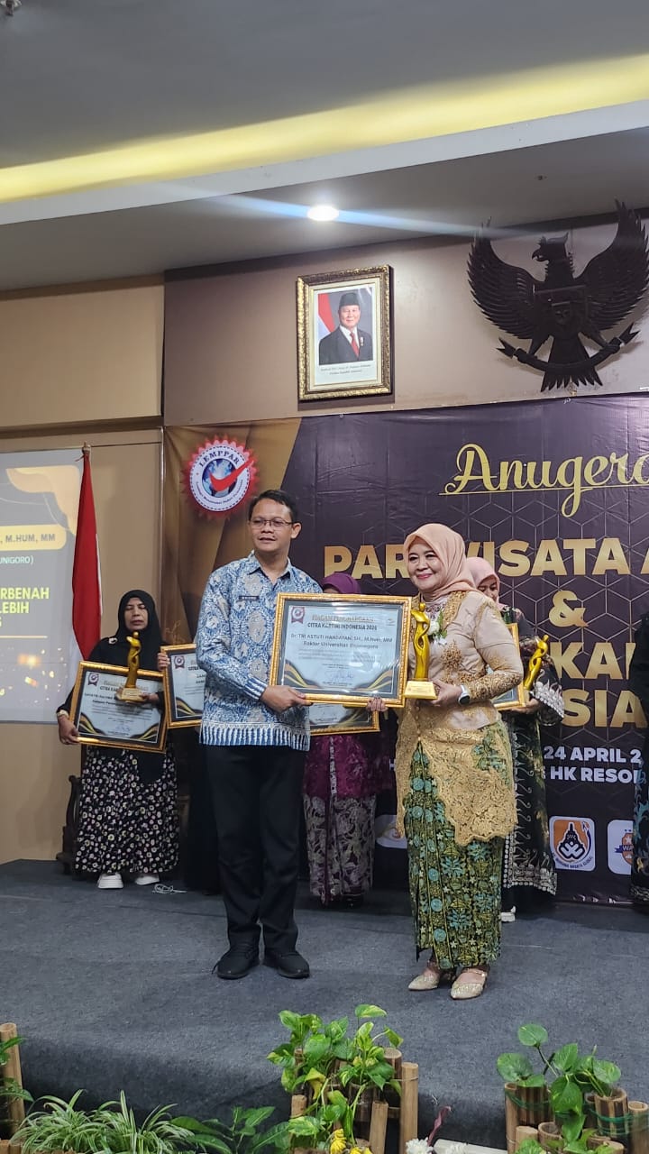 DR. Tri Astuti Handayani, SH., M.Hum., MM, Rektor Universitas Bojonegoro (Unigoro) Pada kesempatan tersebut Dirinya menyampaikan Ucapan Terimakasih kepada semua pihak Yang Telah berdedikasi tinggi, Demi berlangsungnya acara Anugerah “Citra Kartini Indonesia 2026” dan Pariwisata Award 2026. Ajang penganugrahan Yang bergengsi, kompetitif akuntabilitif. Dengan Harapan kegiatan seperti ini dapat di laksanakan terus Berkelanjutan sebagai Suportif atau penyemangat berdaya saing, kreatif dan kompetitif.Sehingga Mendorong para Penerima Award Untuk lebih baik dan lebih meningkatkan prestasi masing masing” Ucap Rektor Unigoro singkat.(SH).
