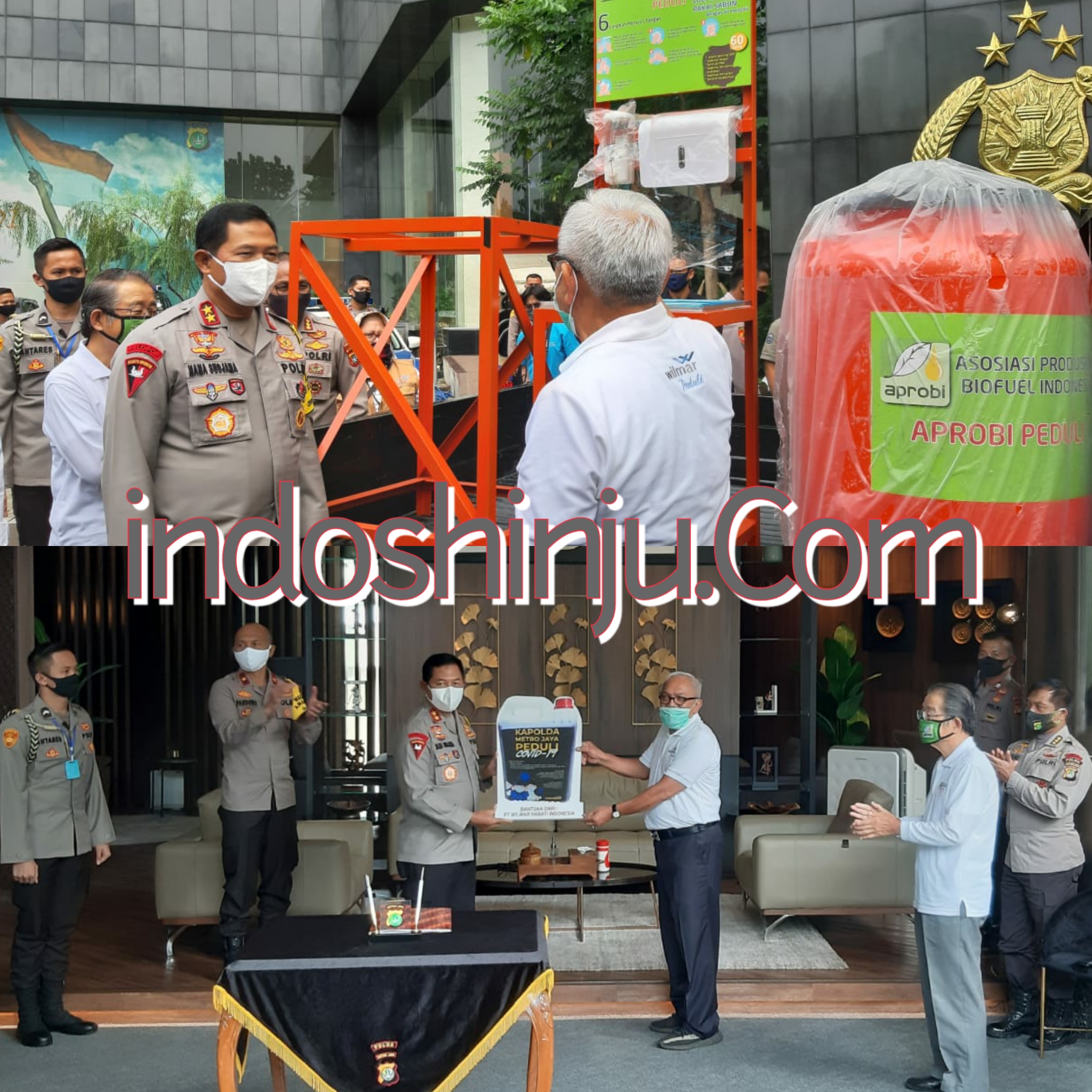 Polda Metro Jaya menerima bantuan dari PT Wilmar Nabati Indonesia berupa 7 ton handsoap sabun pencuci tangan dan 25 unit tangki tempat cuci tangan dari APROBI.